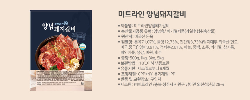 양념돼지갈비 선물세트 1kg x 3팩